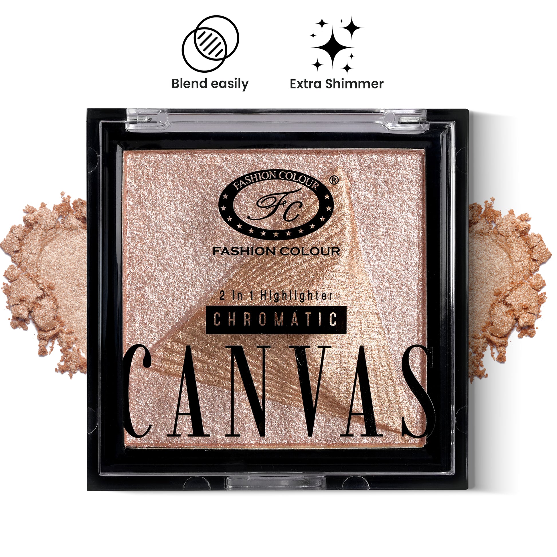 Elevate your glow game with the Fashion Colour Canvas Chromatic 2-in-1 Highlighter – your ultimate companion for radiant, luminous skin. This highlighter features a duo of shimmering tones that can be used individually or blended together for a customized glow that enhances every look. Whether you're aiming for a soft, natural radiance or a bold, sculpted highlight, the silky formula blends effortlessly onto the skin for a smooth, seamless finish.
