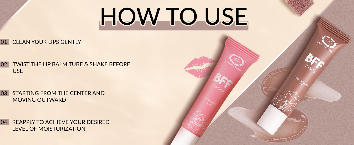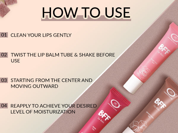 Twist and Apply: Twist the lip balm tube to reveal the product. Glide it smoothly over your lips, starting from the center and moving outward.