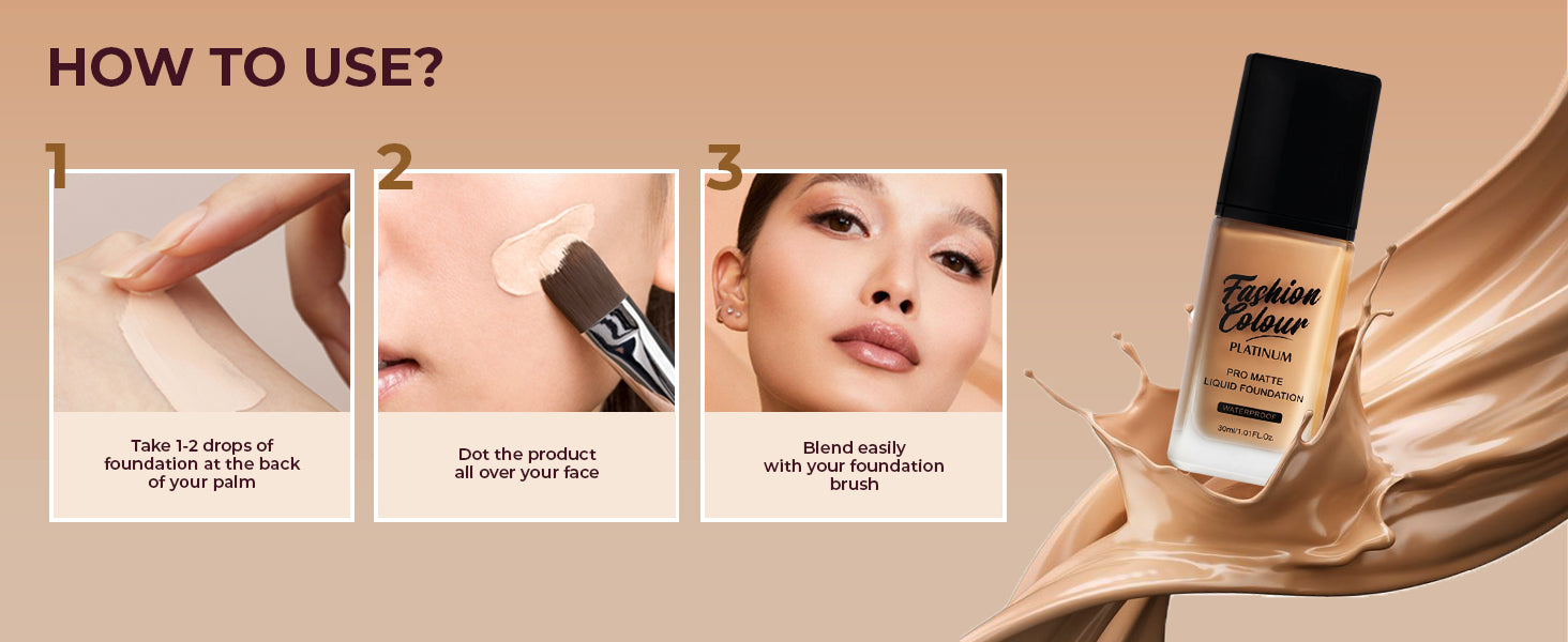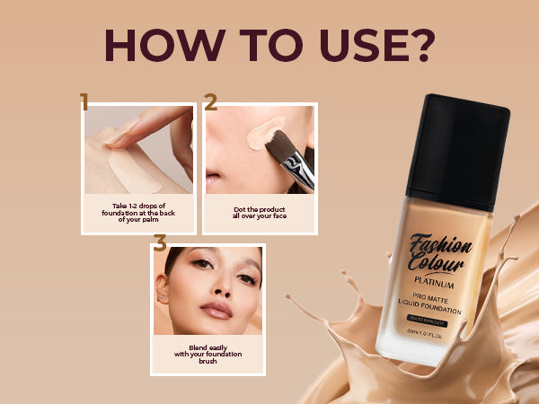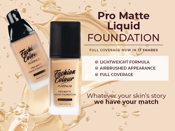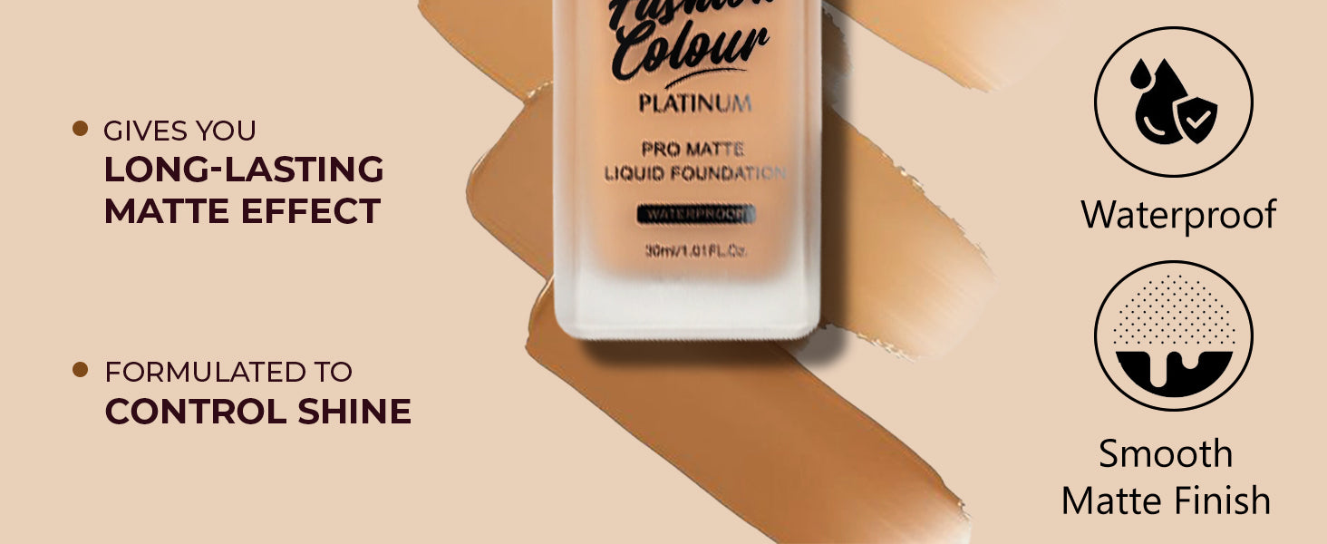 The Fashion Colour Pro Matte Liquid Foundation is designed for those seeking a flawless complexion with a matte finish. This foundation offers full coverage, effectively concealing imperfections, redness, and uneven skin tone. Its lightweight formula feels comfortable on the skin, allowing for all-day wear without feeling heavy or cakey. The foundation is specially formulated to control shine, making it ideal for oily and combination skin types. It blends seamlessly and provides a smooth, airbrushed appearance, ensuring that your makeup looks fresh and flawless from morning till night. The foundation is available in a range of shades to cater to diverse skin tones, ensuring everyone can find their perfect match. With added skin-loving ingredients, it hydrates the skin while delivering a long-lasting matte effect. Whether for everyday wear or special occasions, this foundation is a staple for achieving that polished, professional look.