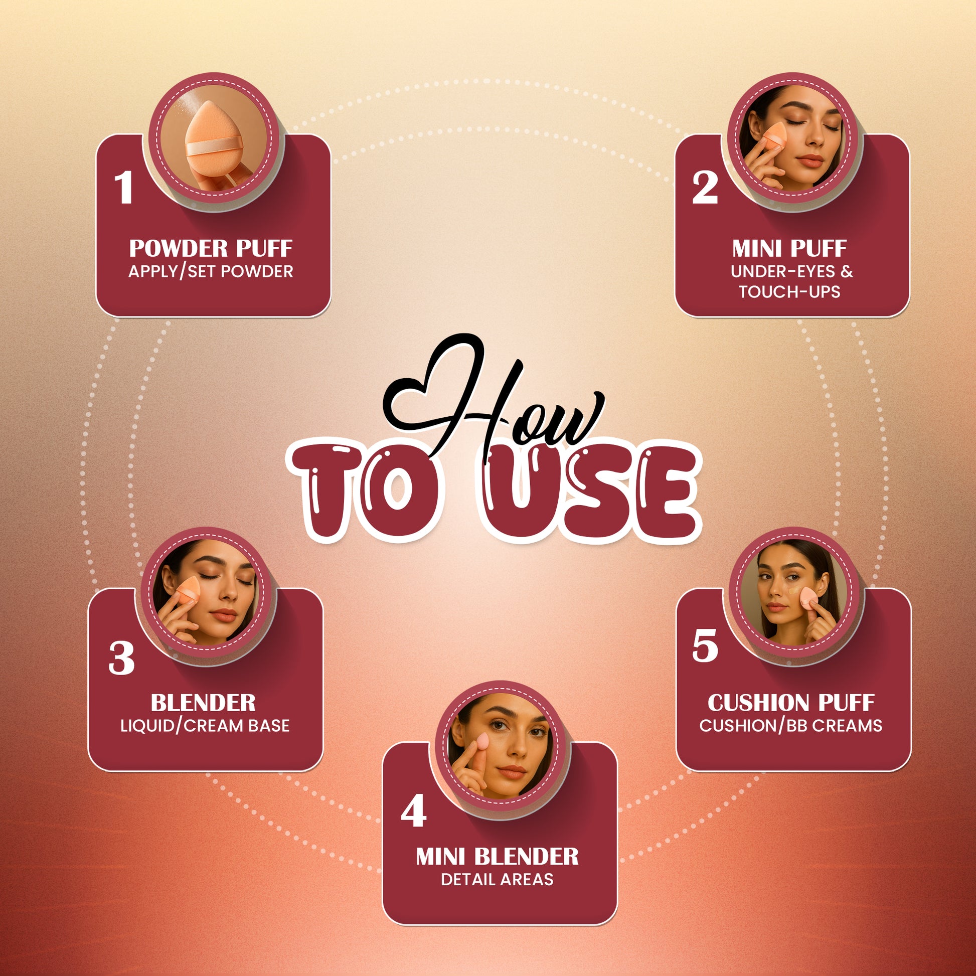 Finish with Mini Puffs for touch-ups or highlighting small areas.